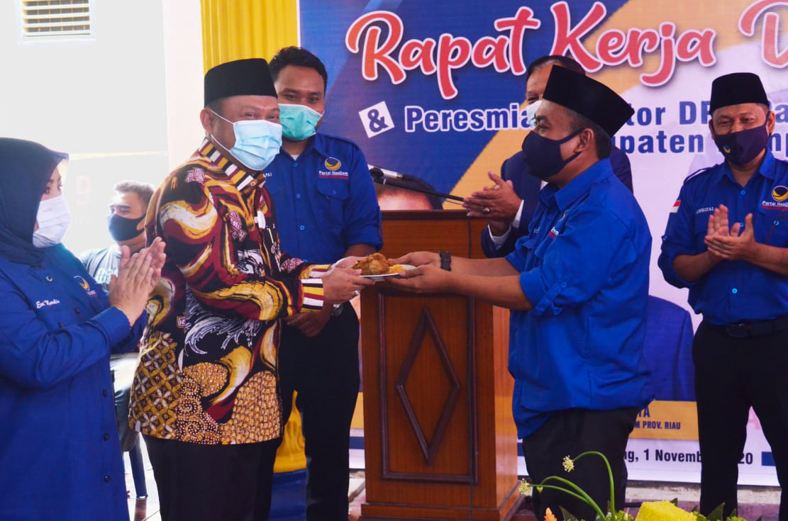Bangkinang Kota, Bupati Kampar H Catur Sugeng Susanto SH Hadiri Hari Jadi Partai Partai Nasional Demokrat (Nasdem) ke-9 dan Pembukaan Rapat Kerja (Raker) Daerah Nasdem Kampar tahun 2020 yang di buka oleh Sekretaris DPW partai Nasdem Provinsi Riau Prof H. Edi Satria serta Peresmian Rumah Restorasi Parta Nasdem Kabupaten Kampar oleh Bupati Kampar di Bangkinang Kota. Ahad, (1/11)