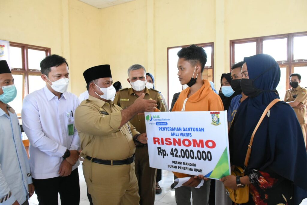 Selain kartu keikutsertaan BPJS, pada kesempatan tersebut Yusri secara simbolis juga menyerahkan santunan sebesar Rp 42 kuta kepada Ahli Waris Risnomo yang baru bergabung selama satu bulan dengan BPJS Ketenagakerjaan dan mengalami kecelakaan kerja yang mengakibatkan meninggal dunia .